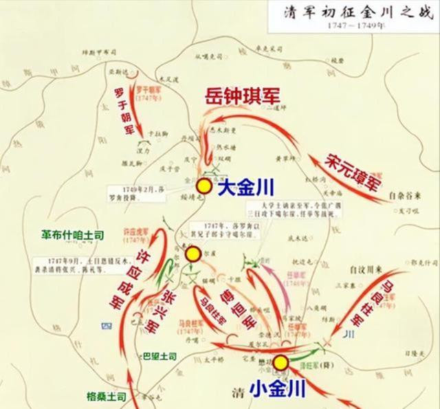 乾隆十二年,大金川挑事,袭击小金川地界,清廷调军干涉,第一次金川之战开始。